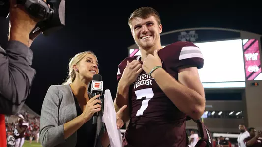 2015 REDSHIRT FRESHMAN SEASON: Served as the backup to Dak Prescott, seeing action in eight games … Completed 11-of-14 passes for 235 yards with three touchdowns and no interceptions … Rushed 23 times for 127 yards and three touchdowns, which ranked second on the team … Made his collegiate debut late in the season-opening victory at Southern Miss (9/5), rushing two times for 36 yards … Accounted for three touchdowns against Northwestern State (9/19) – his third collegiate game – throwing for one and rushing for two more … Was a perfect 4-of-4 through the air for 90 yards against the Demons … Spelled an ill Dak Prescott early against Troy (10/10) and completed 6-of-7 passes for 141 yards and two touchdowns, while also carrying the ball eight times for 29 yards and a score … Maintained over a 3.0 GPA and was named to the SEC Academic Honor Roll.