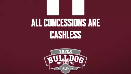 Concessions will be available on the concourse of Dudy Noble Field and select areas of Davis Wade Stadium. All concessions stands for the 2024 season are CASHLESS.