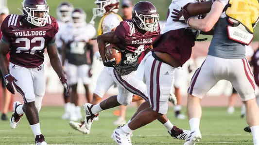 at LSU (9/26): Set career highs in receptions (6) and receiving yards (122) ... One of three receivers that eclipsed 100 yards receiving on the day (Osirus Mitchell [183] and Kylin Hill [158]), marking only the second time in program history a trio of Bulldogs achieved the feat ... Finished with the third-highest receiving grade (71.5) on the team, according to PFF ... Five of his receptions were for first downs, including three on third down ... Matched his career-long reception (34). Arkansas (10/3): Hauled in a 17-yard pass for the first touchdown reception of his career in the first quarter ... Finished with two catches for 23 yards ... Returned two kickoffs for 49 yards ... Recorded one tackle. at Kentucky (10/10): Caught five passes for 34 yards ... Three of his receptions were first downs ... Combined with State's receiving corps to haul in an MSU-record 45 completions ... Recorded one tackle. Texas A&M (10/17): Posted two receptions for nine yards. at Alabama (10/31): Caught two passes for 16 yards ... Returned four kickoffs for 72 yards ... Recorded one tackle. at Georgia (11/21): Finished with two receptions for 21 yards. vs. Tulsa (12/31): Made one tackle on special teams.