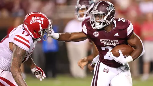 2019 SENIOR SEASON: Played in 11 games with no starts … Missed two games due to injury … Rushed 55 times and was third on the team in rushing yards with 433 … Tied for second on the team in rushing touchdowns with six … Averaged a team-best 7.9 yards per rushing attempt … Earned an 88.7 run-game grade from Pro Football Focus, which ranked third in the SEC among running backs … 233 of his 433 rushing yards came after contact, according to PFF … Logged one 100-yard rushing game once … Longest run of the year was 47 yards … 16 runs resulted in a first down … Recorded 13 runs of 10 or more yards, including six that gained 20-plus … Registered two 20-plus yard touchdown runs … Scored a rushing touchdown in six different games, including one in each of the last three … Scored on an 8-yard run in the season opener at Louisiana (8/31) … Followed up with another rushing touchdown on a 13-yard run vs. Southern Miss (9/7) … Did not play in the next two games vs. Kansas State (9/14) and vs. Kentucky (9/21) due to injury … Turned in the most productive stretch of his career in the last five games of the season, carrying 40 times for 349 yards and four touchdowns … Had a career performance at Arkansas (11/2), producing a career-high 129 rushing yards on 12 carries and finding the end zone on a 47-yard run (longest TD run on the team this season) … Averaged 10.8 yards per rush and finished with three 20-plus yard runs against the Razorbacks … Rushed nine times for 56 yards vs. No. 5 Alabama (11/16) … Carried eight times for 53 yards and a score vs. Abilene Christian (11/23) … Scored the first touchdown of the game in the Egg Bowl win vs. Ole Miss (11/28) on a 27-yard rush … Added a 30-yard run later in the game against the Rebels … Closed out his career with 54 yards and a 3-yard touchdown run on eight attempts in the Music City Bowl vs. Louisville (12/30) … Averaged 8.6 yards per rush attempt over the final five games of the year.