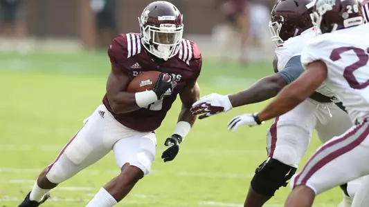 2017 SOPHOMORE SEASON: Appeared in all 13 contests, making his first career start at Arkansas (11/18) … Ranked third among MSU’s running backs with a career-high 239 yards on 45 rush attempts, while scoring his first career touchdown … Showed versatility with three receptions for a total of 25 yards … Rushed for 41 yards on six carries in MSU’s season opener vs. Charleston Southern (9/2), while reeling in the first catch of his career for a 4-yard pick up … Turned in a breakout performance at No. 11 Georgia (9/23) with a career-high 52 yards rushing, including a career-long carry of 32 yards … Carried the ball four times for 43 yards at No. 24 Texas A&M (10/28) and scored his first-career touchdown in the third quarter … Tied his career high with six touches for 13 yards vs. Louisville (12/30) in the TaxSlayer Bowl.