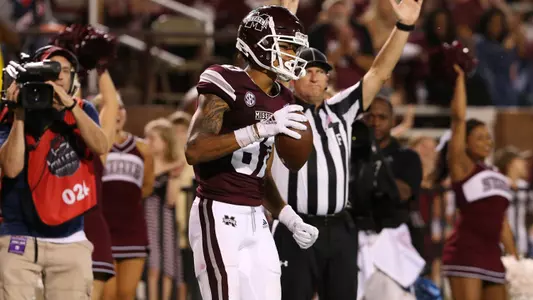 Appeared in all 13 games with 11 starts … Led team in receiving yards (430) and receiving touchdowns (6) and was No. 3 in receptions (29) … Each of his team-leading six touchdown receptions went for 20-plus yards … Recorded multiple receptions in seven contests … Opened the season with a touchdown in each of the first three games, becoming the first MSU player with a touchdown reception in three straight games since Chad Bumphis (2012). vs. Louisiana (8/31): Grabbed six passes for a season-best 88 yards … Hauled in a 31-yard touchdown catch on the game-opening drive. Southern Miss (9/7): Made two catches for 46 yards and one touchdown … Opened the scoring for MSU with a 28-yard touchdown reception. Kansas State (9/14):Had five receptions for 74 yards and one touchdown … Became the first MSU player with a touchdown reception in three straight games since Chad Bumphis (2012) … Closed out the first half with a 35-yard touchdown reception from Tommy Stevens. Kentucky (9/21): Made four grabs for 36 yards. at No. 7 Auburn (9/28): Owned two receptions for 33 yards … Caught his fourth touchdown of the season with a 21-yard scoring grab in the third quarter. at Tennessee (10/12): Hauled in five passes for 58 yards. at Texas A&M (10/26): Made one catch for nine yards.  at Arkansas (11/2): Made one catch for 33 yards and one touchdown … Lone catch gave MSU a 14-0 lead in the first quarter. Abilene Christian (11/23): Had one reception for six yards. vs. Louisville (12/30): Hauled in two passes for 47 yards and one touchdown … Accounted for the final touchdown of the season, a 24-yard strike from Tommy Stevens.