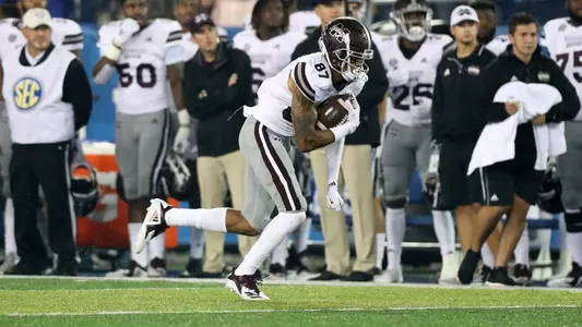Started all 13 games … Led team in receptions (26) and tied for the team lead in receiving touchdowns (4) … Ranked No. 55 in the FBS and No. 8 in the SEC in yards per catch (16.4) … Caught at least one pass in 10 games … Thirteen receptions resulted in a first down … Nine catches gained 15-plus yards and four went for 25-plus yards … Recorded multiple receptions in seven games. Stephen F. Austin (9/1): Made first career start … Boasted a game-high 114 yards … Both receptions went for touchdowns … First Bulldog receiver to record at least 100 yards and multiple touchdowns in a game since Fred Ross (vs. Arkansas; 2016) … Hauled in an 84-yard touchdown pass from Keytaon Thompson, which tied for MSU’s longest pass of the year. at Kansas State (9/8): Made one catch for five yards. at Kentucky (9/22): Made six receptions for 65 yards. Florida (9/29): Had three receptions for 35 yards. No. 8 Auburn (10/6): Made one catch for 23 yards. at No. 5 LSU (10/20): Grabbed one pass for five yards. No. 16 Texas A&M (10/27): Hauled in six passes for 96 yards and one touchdown … Grabbed a 38-yard touchdown reception in the third quarter to give MSU the lead for good. at No. 1 Alabama (11/10): Made two catches for 17 yards. Arkansas (11/17): Hauled in two passes for 21 yards and one touchdown … Caught a 15-yard touchdown pass in the third quarter. vs. Iowa (1/1): Recorded two catches for 42 yards … Owned a long reception of 34 yards.
